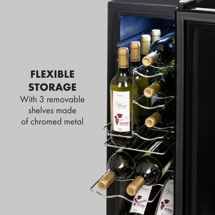Mīlētājiem un cienītājiem: Klarstein Shiraz 12 Slim Uno vīna dzesētājs ir stilīga uzglabāšanas telpa, kas uztur vīnus ideālā dzeršanas temperatūrā.