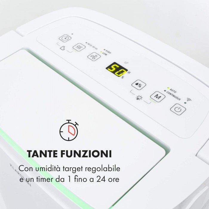 Mitruma attīrītājs KLARSTEIN DryFy Connect 50 Wifi, 50 l / 24 h, 360 m3 / h Sūkšanas jauda telpām 45-55 m², tvertne 7 l, programmējams mērķa mitrums, taimeris, kluss, balts. Par šo produktu