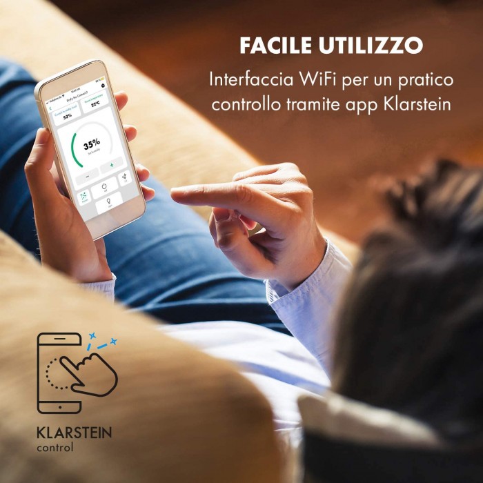 VIEGLĀKAIS VEIDS PIEBILNES MITRUMU: Klarstein DryFy Connect 40 Wi-Fi gaisa mitrinātājs izžāvē mitru vidi pēc darba, atveseļošanās vai ūdens bojājumiem vai regulē mitruma līmeni virtuvē, vannas istabā un guļamistabā.