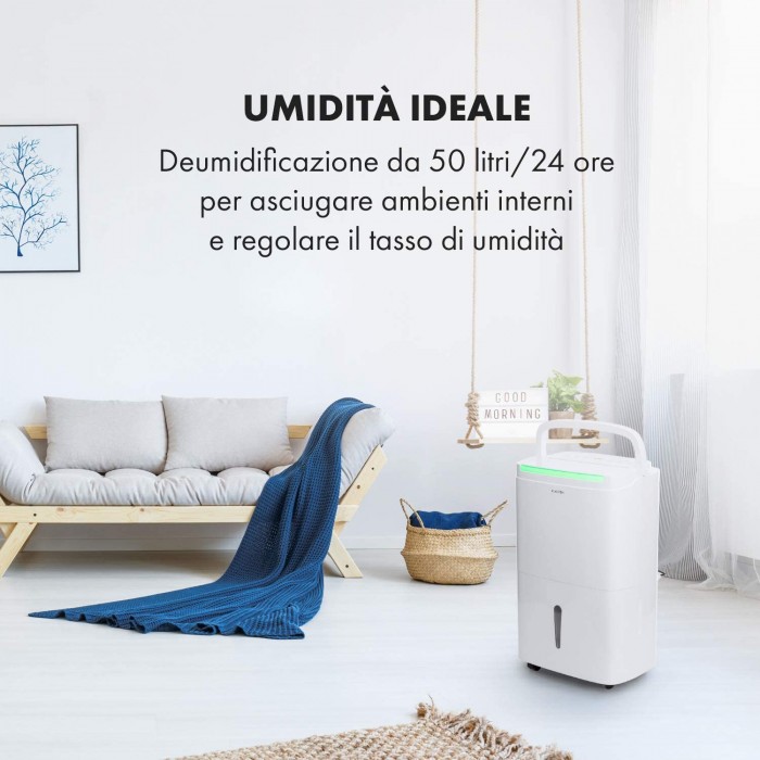 AUGSTA JAUDA: Klarstein DryFy Connect 50 ar sūkšanas jaudu 360 m3 stundā ir ideāli piemērots telpām no 45 līdz 55 m2.