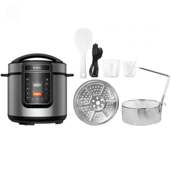 Daudzfunkcionālais elektriskais spiediena katls Hoco HJD27A ar 6 litru tilpumu ir moderna virtuves ierīce, kas apvieno multikatla un spiediena katla funkcijas. Ar 1000 W jaudu un 70 kPa spiedienu tas ļauj ātri un vienmērīgi pagatavot ēdienus, saglabājot to garšu un uzturvērtību.
