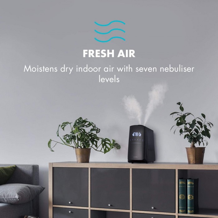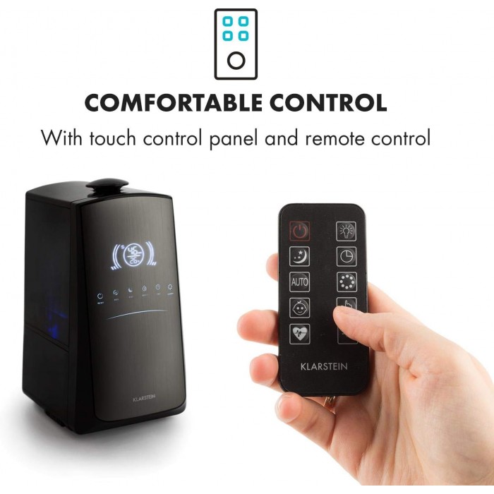 Klarstein VapoAir Opal - jonizators, gaisa mitrinātājs, telpas klimata kontrole, LED fona apgaismojums, skārienekrāns, tālvadības pults, 300 ml/h ietilpība, 5 l tvertne, automātiska apturēšana, melns/antracīts