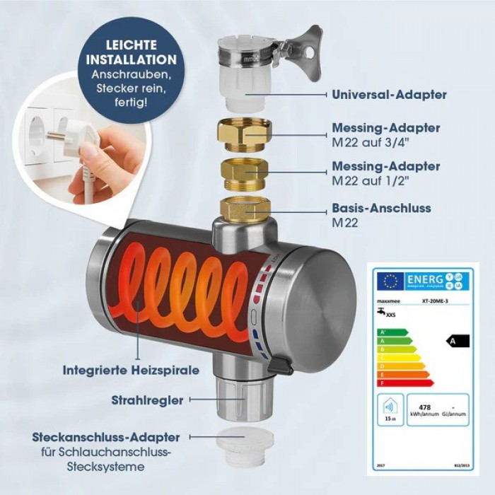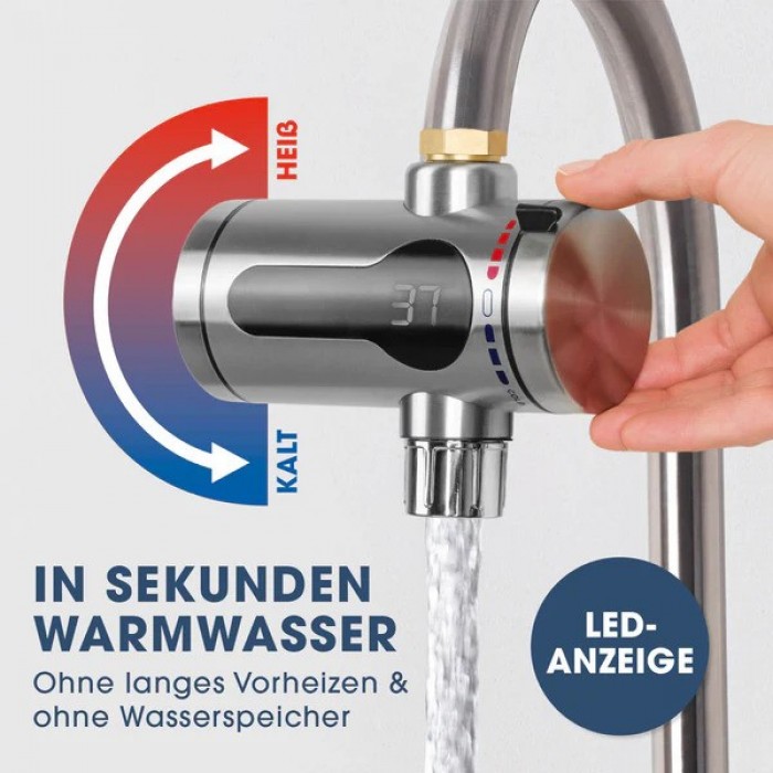 Nerūsējošā tērauda elektriskais momentānais ūdens sildītājs. KOMPAKTS UN JAUDĪGS: Nerūsējošā tērauda elektriskais momentānais ūdens sildītājs ar iebūvētu sildelementu (maks. 3600 W) un LED displeju.